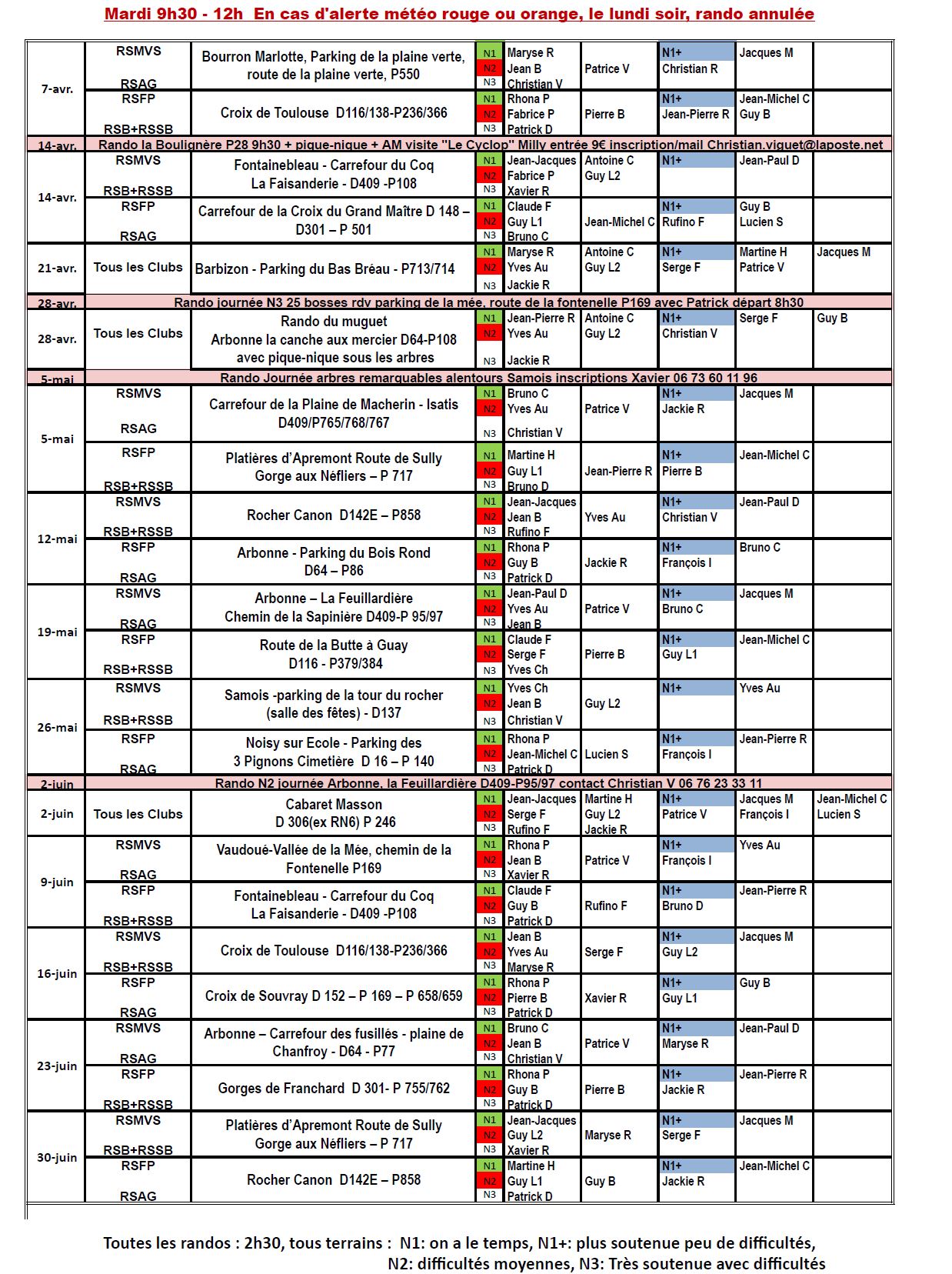 RANDO RSAG du MERCREDI ET VENDREDI